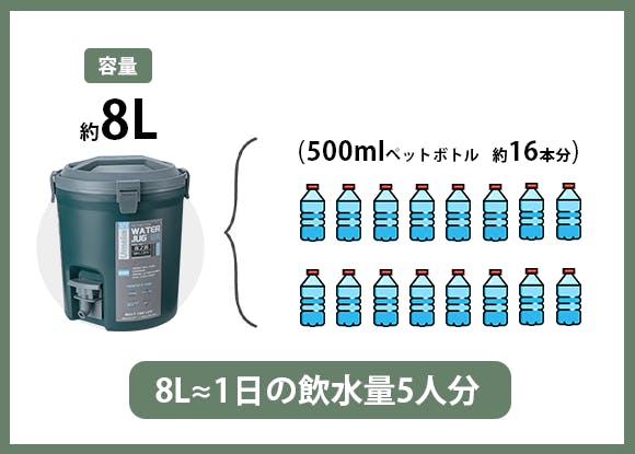 Umakeは大容量8Lですので、約5人が1日に飲む水を保冷することができます。氷やドリンクを入れて冷やしておくこともできますので、家族のお出かけにぴったりです。