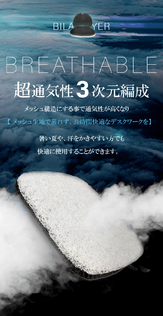 表面裏面約1000個のメッシュ コズモランバークッションが圧を分散!