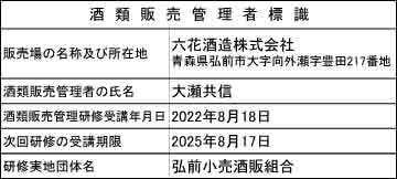 ・販売事業者名:六花酒造株式会社