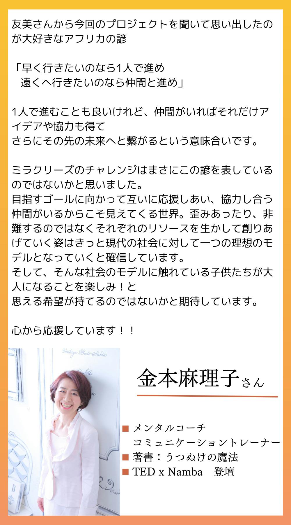 \ミラクリーズの活動に共感していただきありがとうございます/