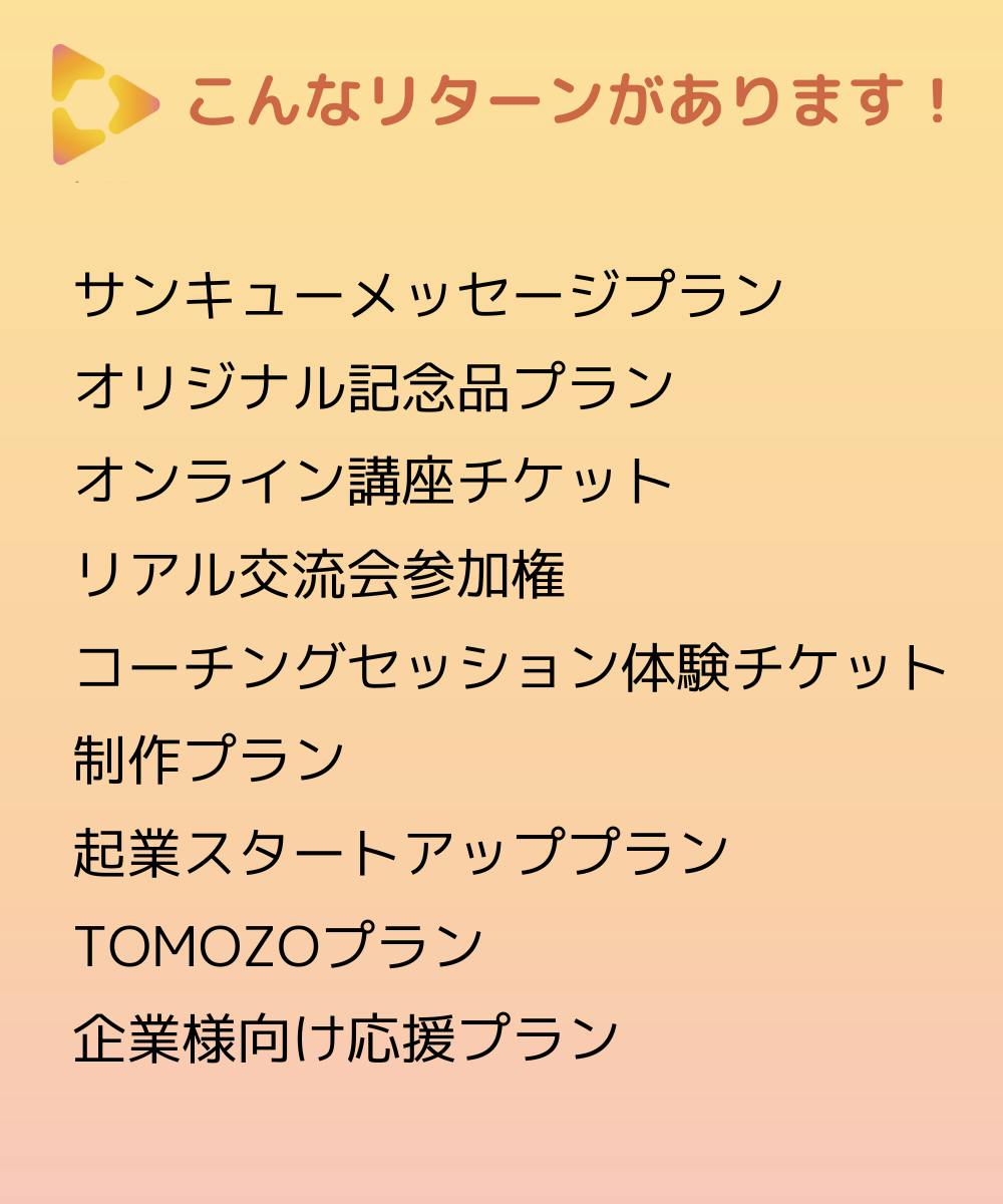 2023/04/15 17:55クラファンプロジェクトも早いものであと8日となりました!本日時点で目標達成率71%たくさんのご支援と応援ありがとうございます!!\残りの期間も盛り上げながら駆け抜けていきたい/ということで代表TOMOZOによるスペシャルリターンを2種類追加いたしました。ーーーーーーーーーーーーーーーーーーーーー・TOMOZOとランチ権・TOMOZOによるオンラインセッション権ーーーーーーーーーーーーーーーーーーーーーどちらも限定5枠ずつです。必要としてくれる方に届きますように! もっと見る