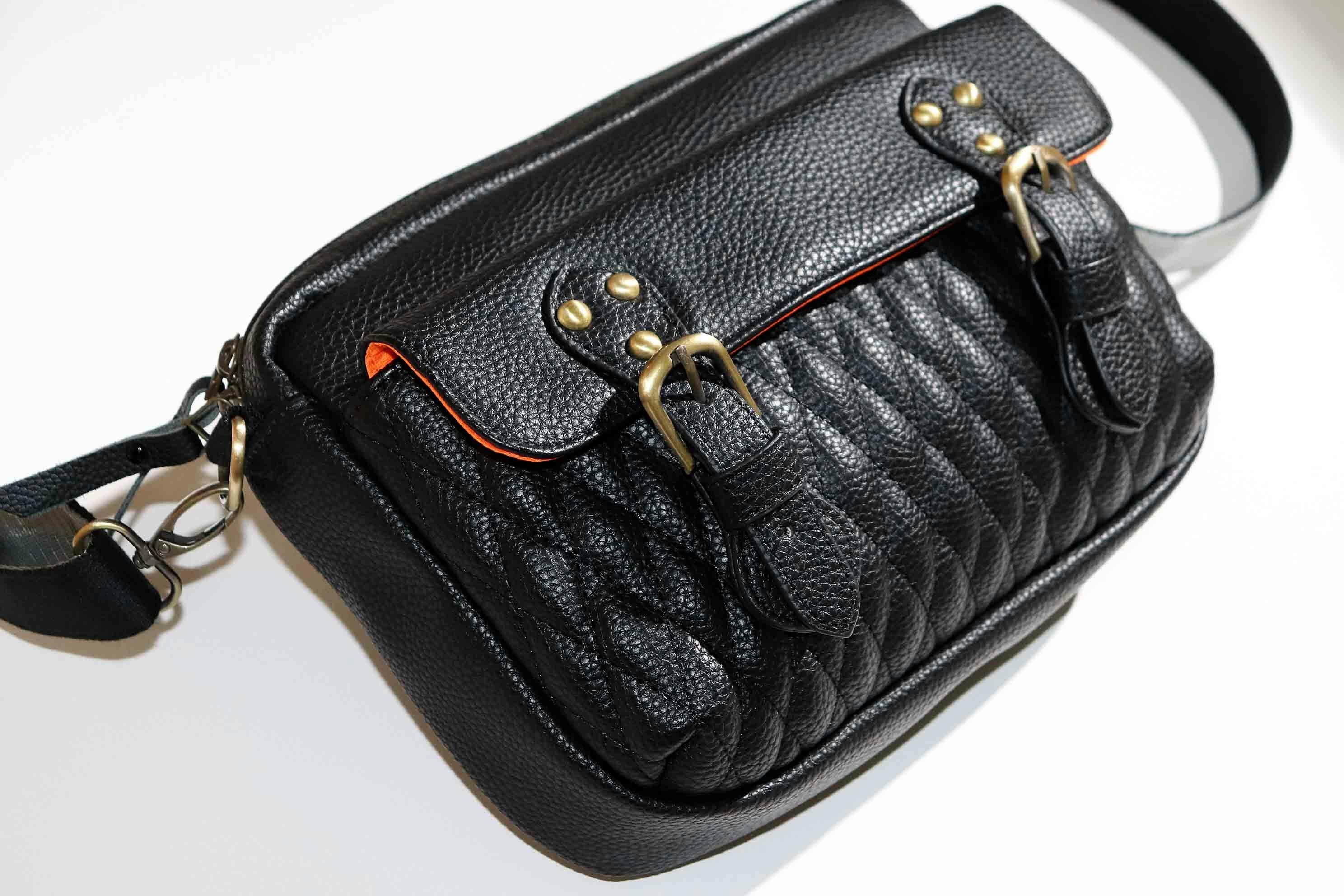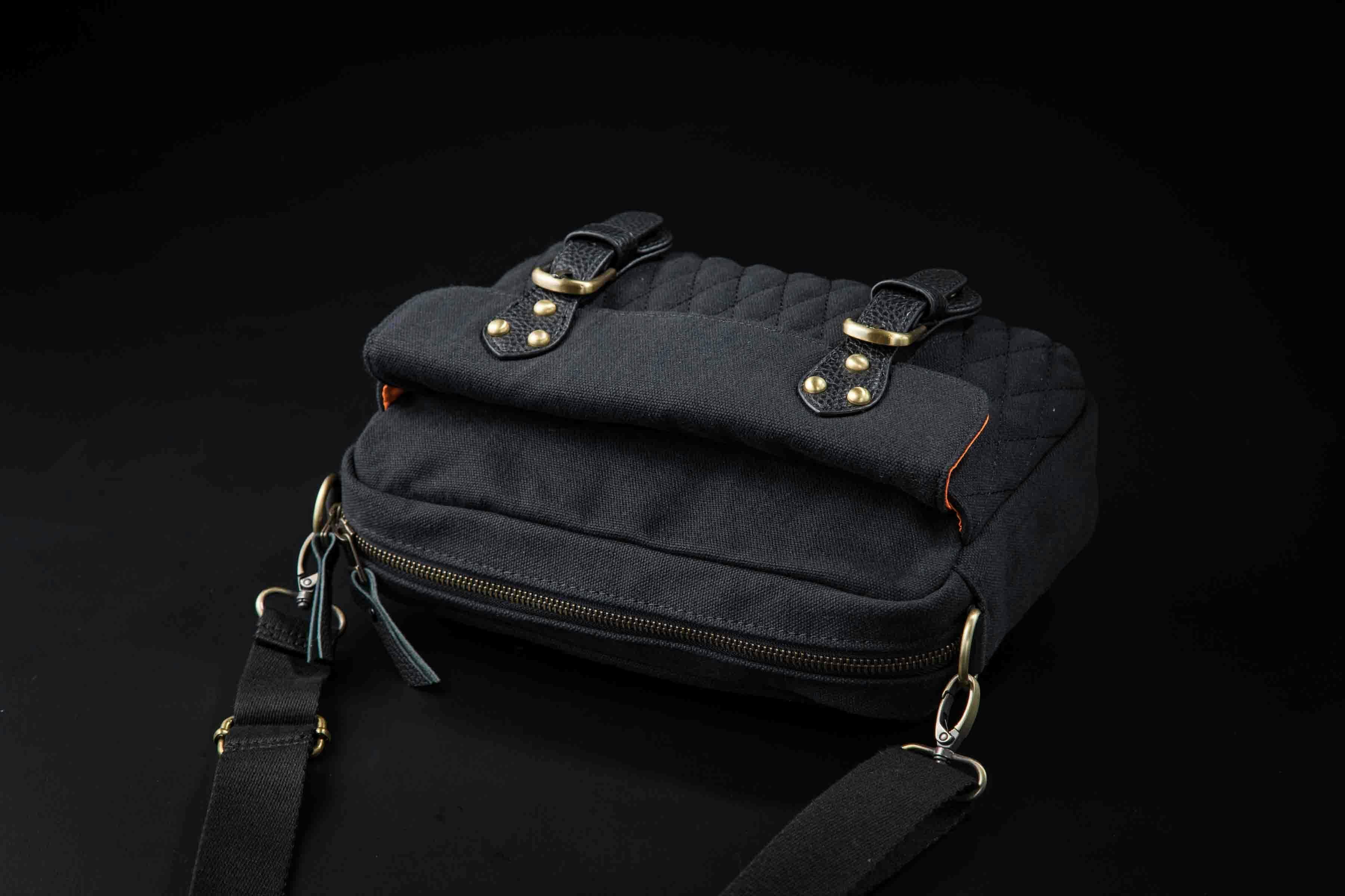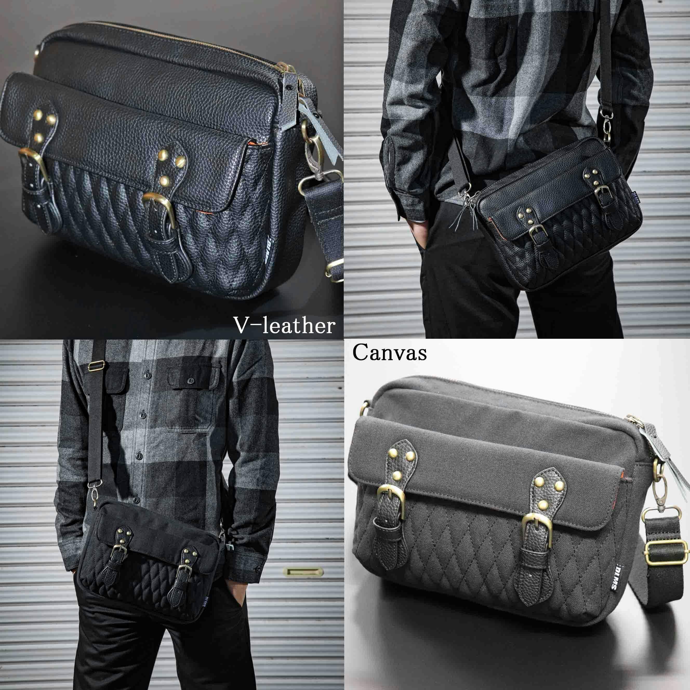 本革と違い、雨や水を弾きますので近場のツーリングなどに使いやすいショルダーバッグです。