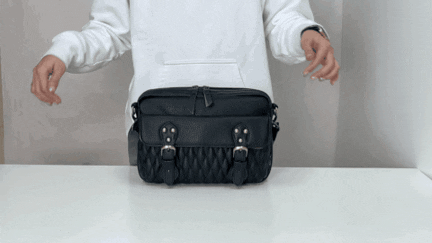型崩れしないボディ設計や、使用者に考慮したポケットデザインなど機能面を充実したショルダーバッグです。