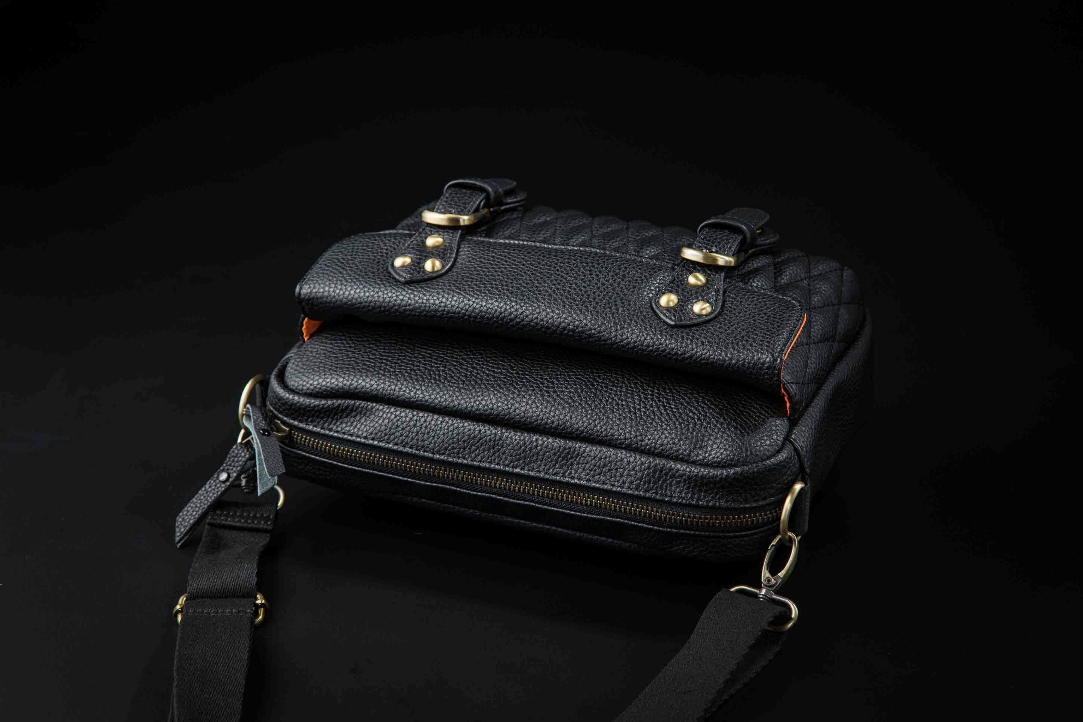 プロジェクトは、ツーリング中やバイクにまたがっている時でも、街中を歩いている時、ペットとの散歩中でもスタイリッシュ&機能的で、よりカッコいいバッグを持ってもらいたいと思い、前面部に菱形のダイヤステッチを施した、デザインに特徴のある横型のショルダーバッグを考案しました。