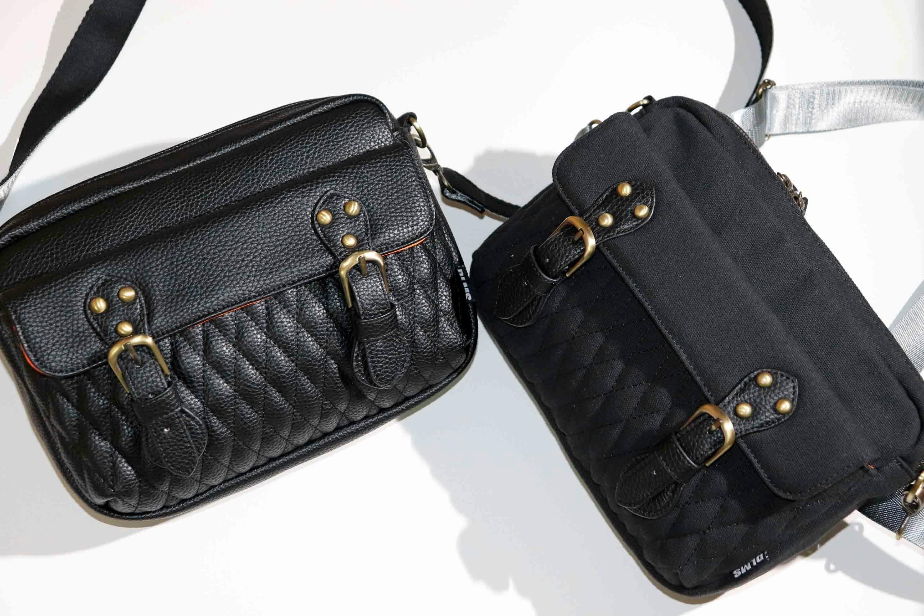 バッグの素材はヴィーガンレザー(マイクロファイバー革)とキャンバス(帆布)の2タイプのショルダーバッグ。