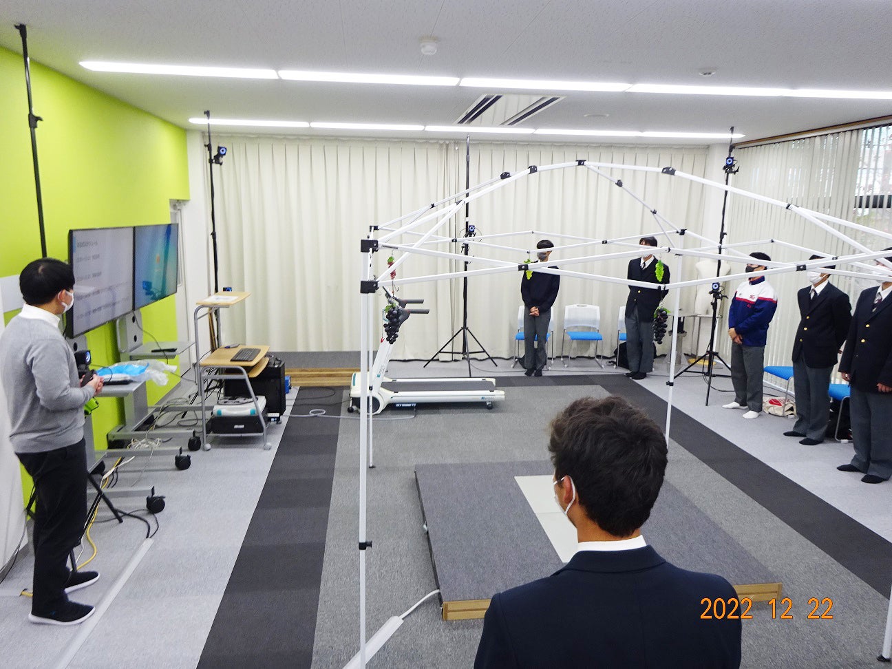 当社ではエビデンスに基づいた製品開発をモットーに、自社で研究施設を構えており、身体への負担がどのように軽減できるか、計測機器を用いて製品の評価をおこなっております。