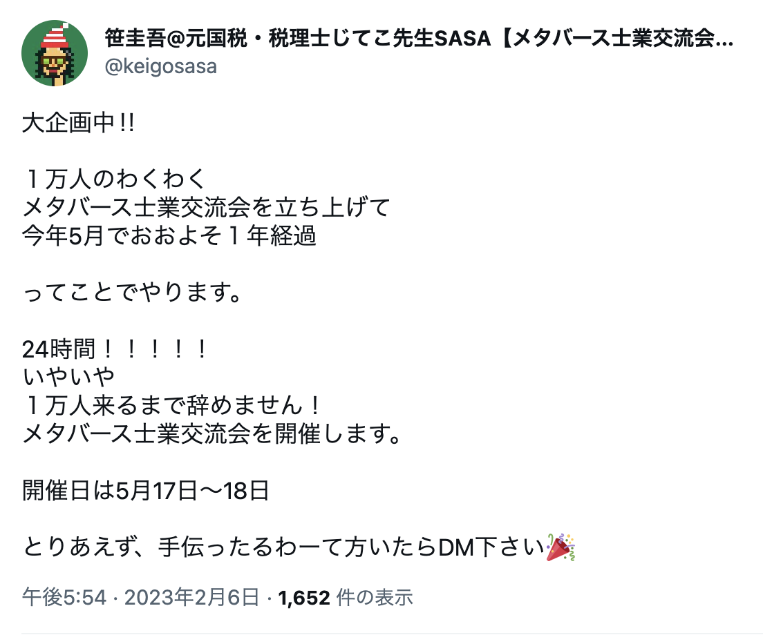 昨年5月に「1万人のわくわくメタバース士業交流会」を立ち上げてから9ヶ月が経ちました。
