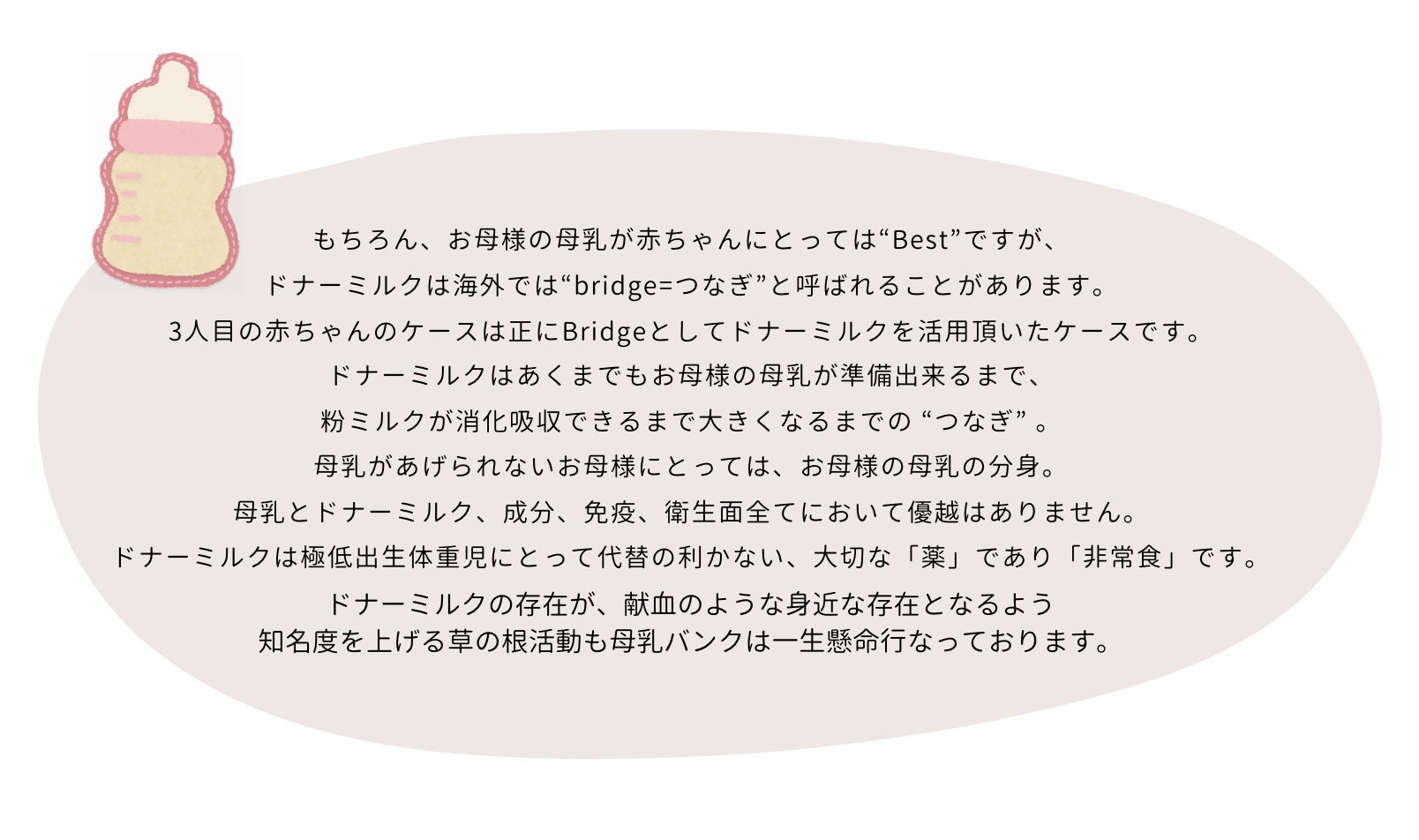 それが母乳バンクがお届けする、ドナーミルクの役目です。