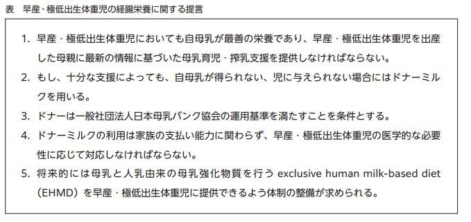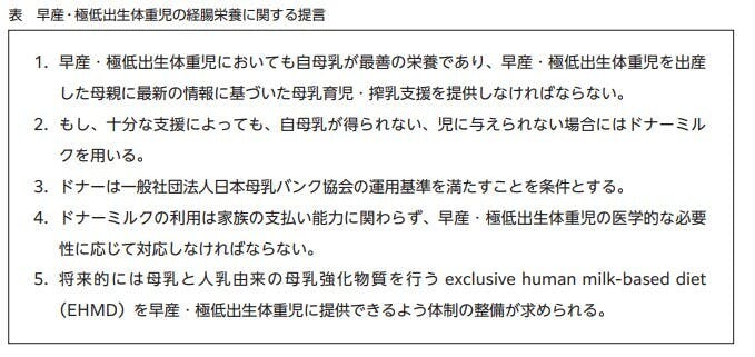 参照:早産・極低出生体重児の経腸栄養に関する提言|公益社団法人 日本小児科学会 JAPAN PEDIATRIC SOCIETY (jpeds.or.jp)