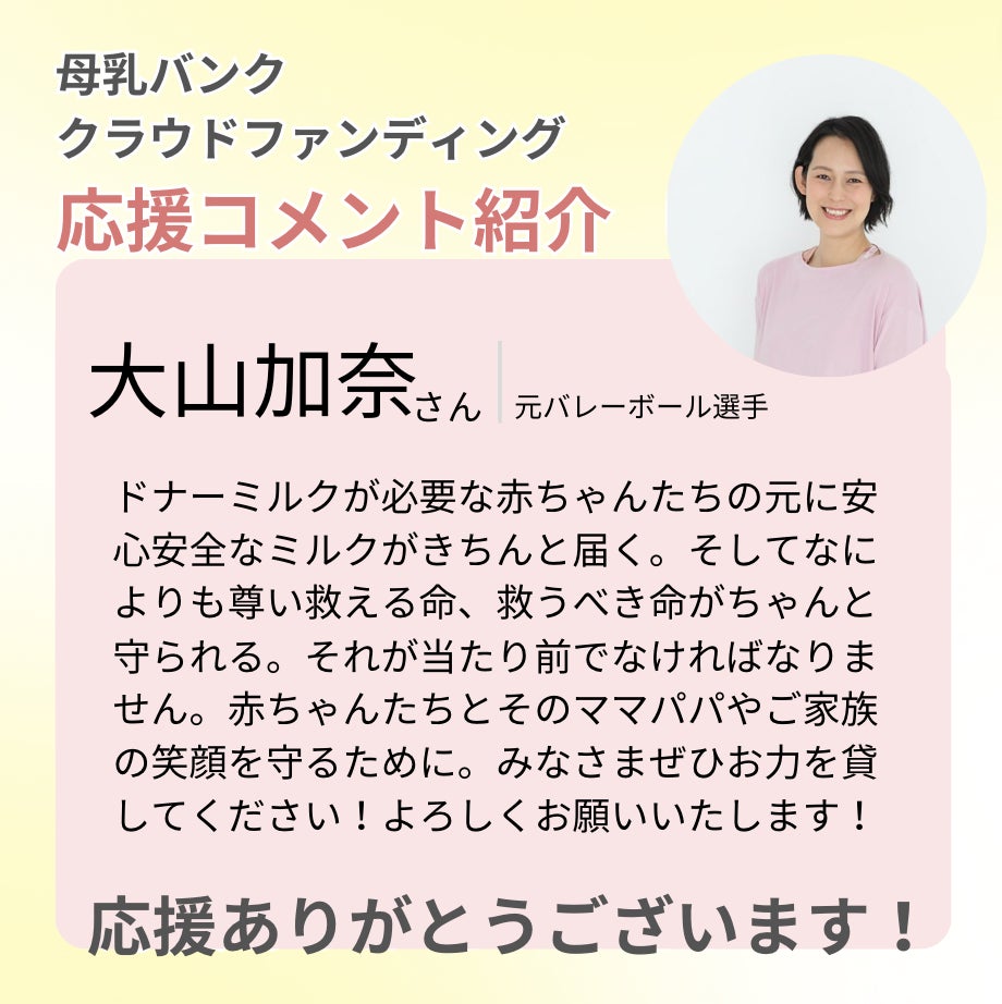 子育てしながら社会にもでて、積極的にお子さんたちと触れ合っていらっしゃる大山加奈さまから応援メッセージをいただきました
