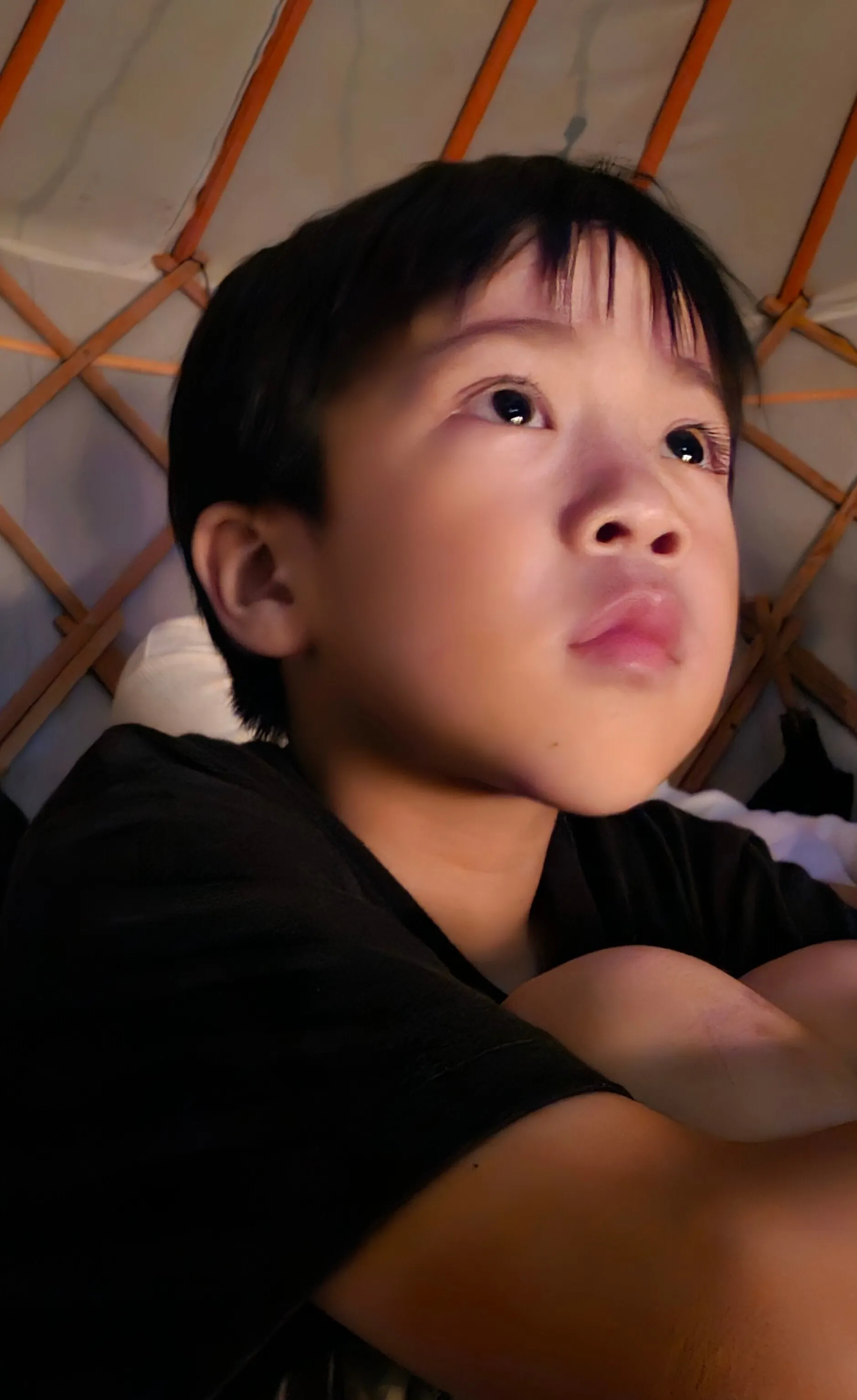 今回の写真は、本校に通う1年生の私の息子です。外は時折激しい雨が降る先週末の夕刻、内輪だけのミニコンサートが、 本校の校舎であるモンゴル・ゲルの中で開催されました。キャンドルで照らされた幻想的な雰囲気の中、モンゴルの楽器・馬頭琴や歌などを聴いている時の息子の表情が「美しいな」と撮りました。子どもの真剣な眼差し、集中している表情っていいですよね。本校の子ども達には、面白い人と出会い、面白いことを体験する機会を数多く提供していきたいと思っています。