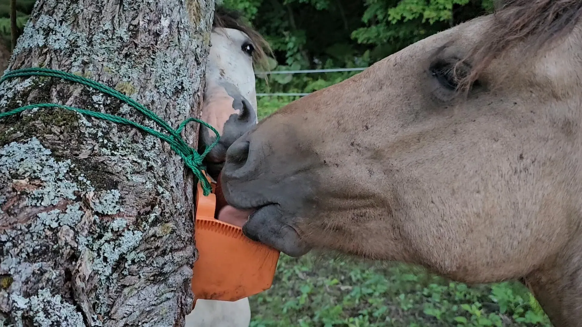 うちの馬たちも自由に生きています。写真はNiちゃんとTayくんが仲良く塩を舐めているところ。草と水と塩があれば生きていけるわけですが、それがすべて揃っている空間で彼らは生活しています。森で笹を食み、敷地に流れる小川で水を飲み、木に吊るされた塩を時折舐め、時々人間と触れ合っています。