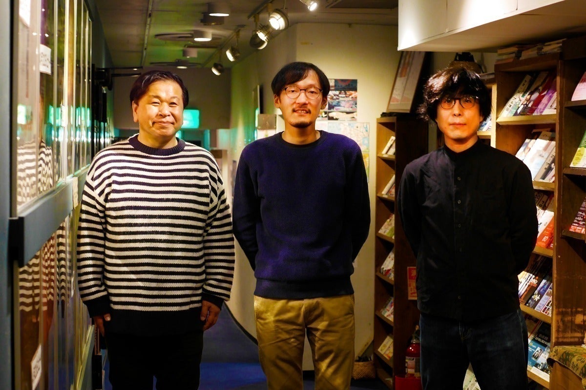 <左より、永口尚紀(副支配人・受付)、小坂誠(支配人・番組編成)、加藤博満(副支配人・映写)>