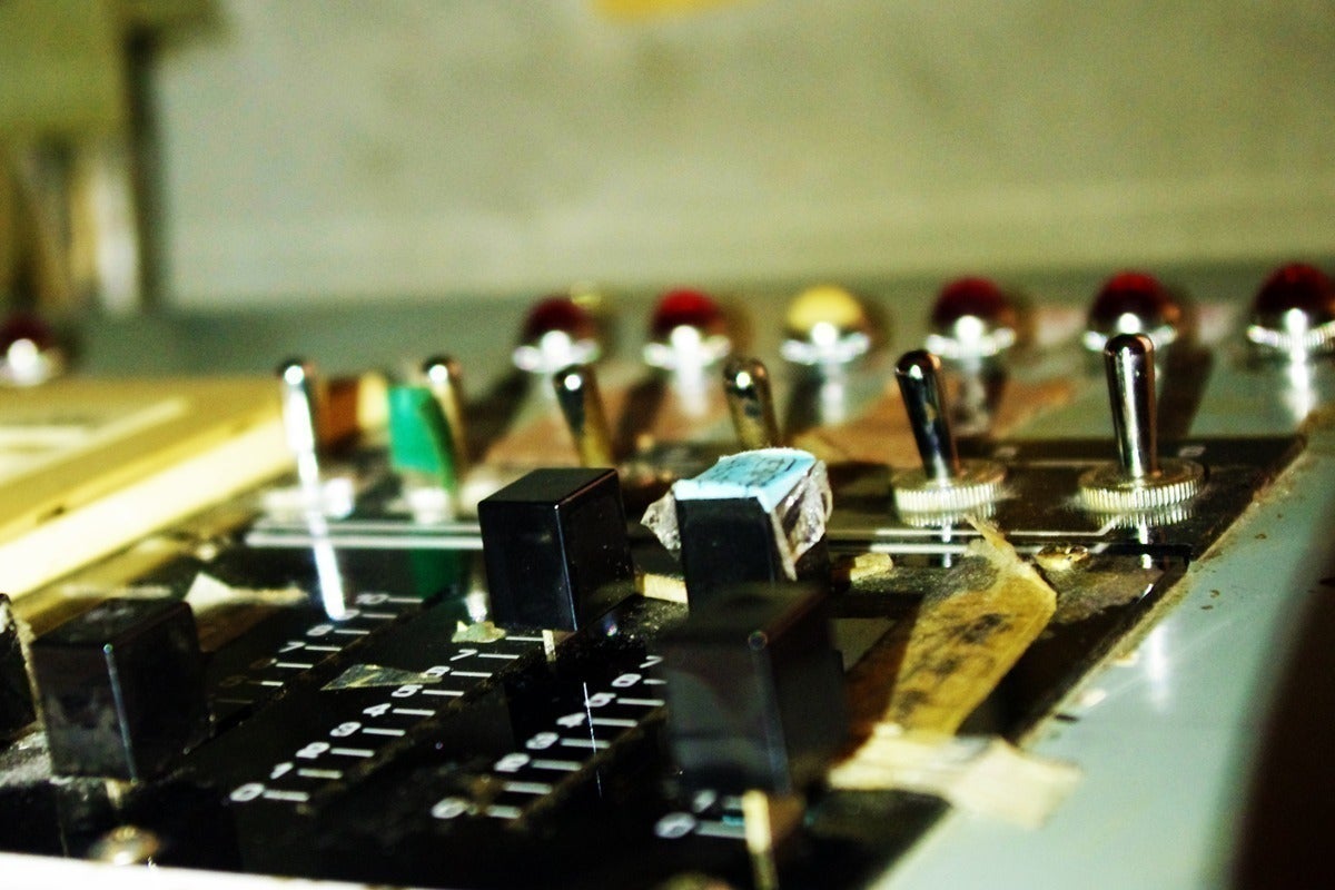 <客席側の電気スイッチはかなり古いタイプの手動式で、部品は既に製造されてないとのこと。