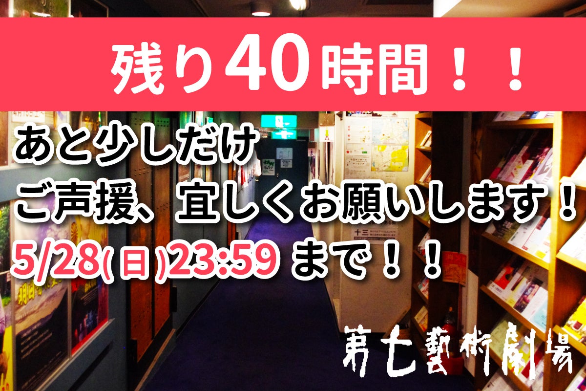 おはようございます、第七藝術劇場です。4/15(土)から開始しました第七藝術劇場・クラウドファンディングも、まもなく終了となります。