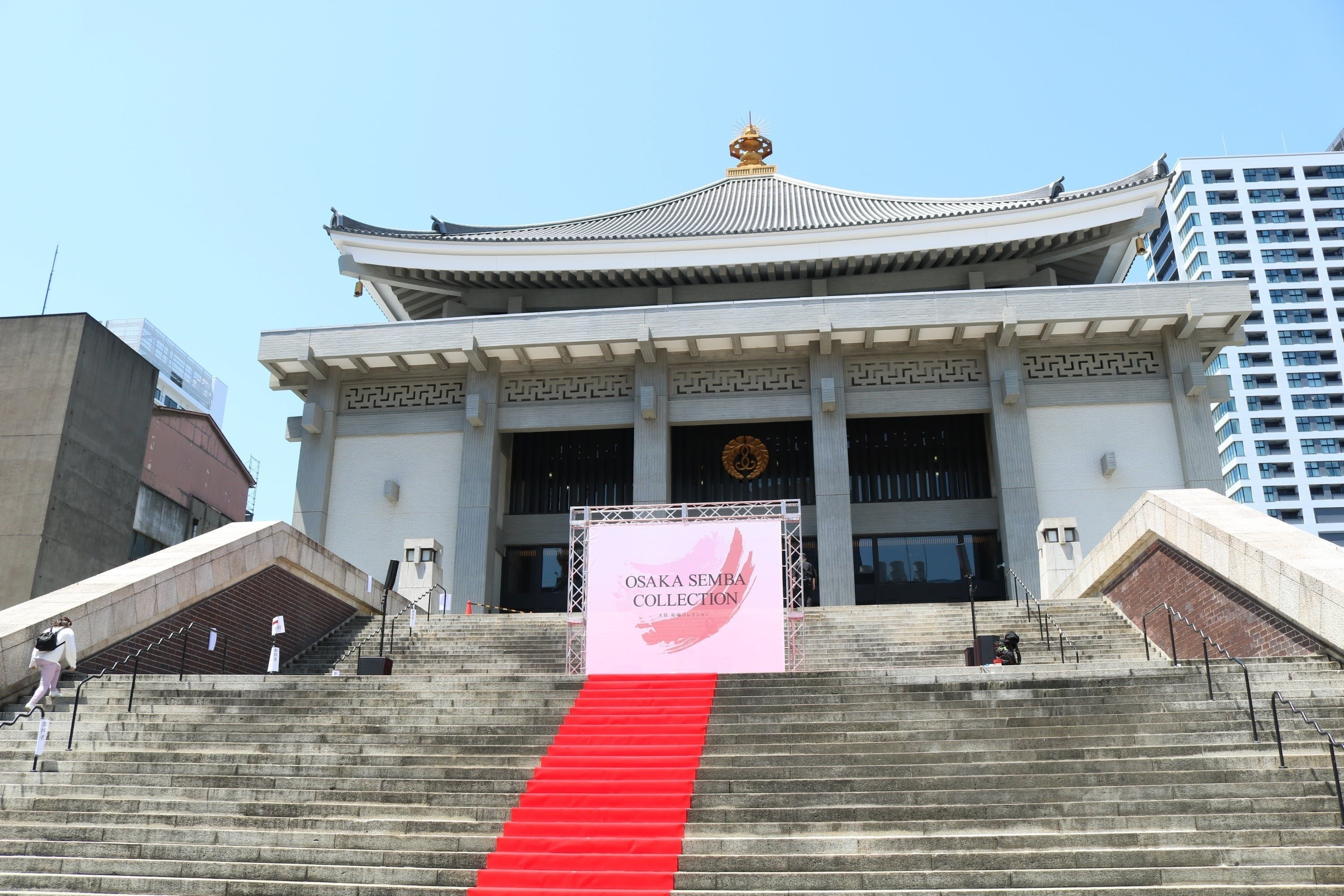 コロナ感染症の影響を受ける中、大阪を代表する御堂筋に面した北御堂さんのご厚意で正面お堂に上がる大階段をレッドカーペットを敷き開催した第一回「大阪 船場コレクション2022」をさらにレベルアップさせ、大阪・関西万博開催の2025年には、地域が一体となる「大阪船場パビリオン」の実現を目指します。