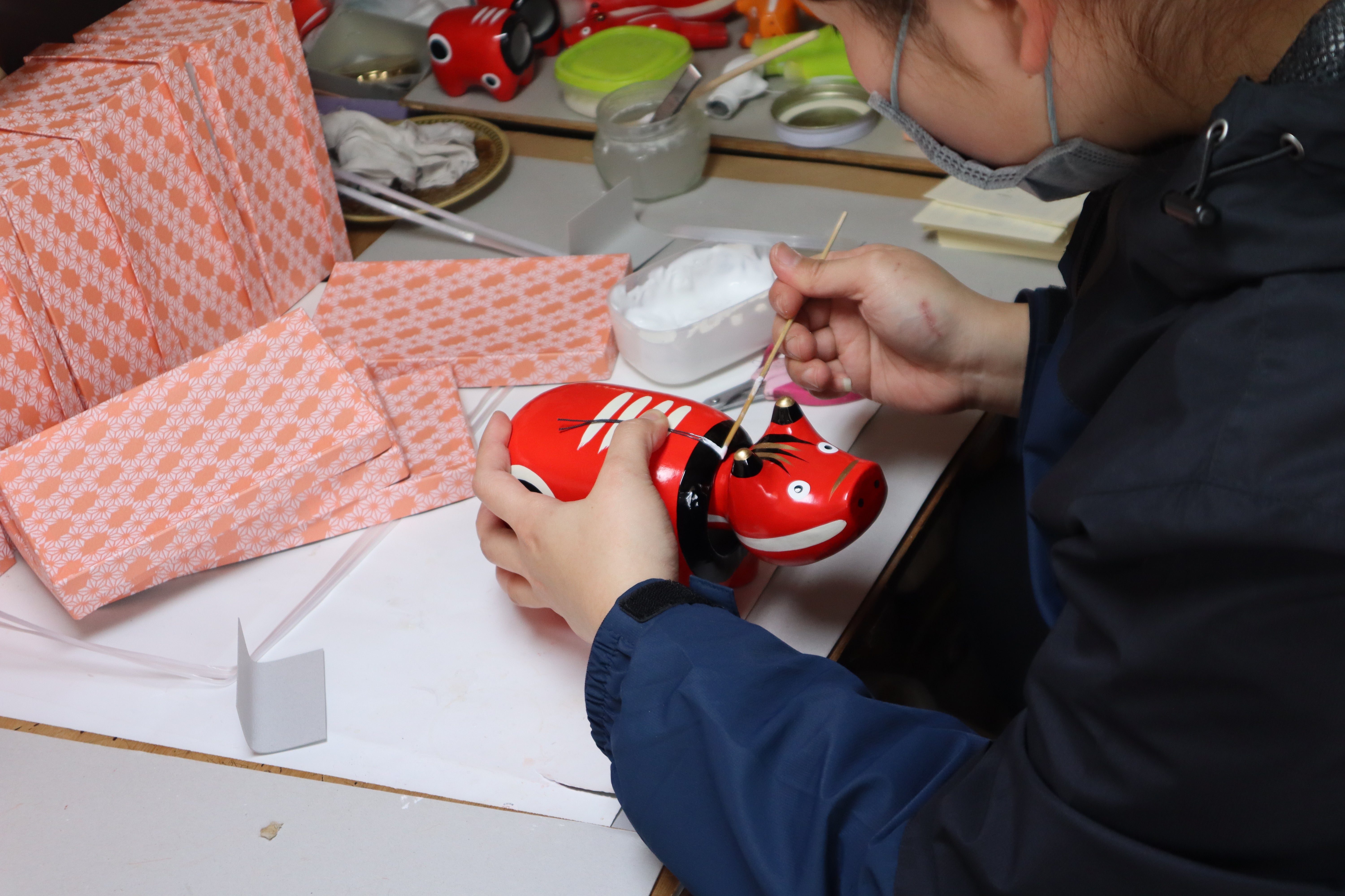 今回赤べこを作っていただく西会津町の「野沢民芸」は、赤べこを作り始めて50年!代表の早川さんは「民芸品は民衆的工芸品の略。美術品でも地位の高い人のためのものでもなく、昔から人々の暮らしに寄り添ってきたものです。皆さんのお家にも部屋の片隅に置かれ、少しホコリをかぶった民芸品があるのではないのでしょうか?『日々生活する中で意識しているつもりはあんまりないけど、無くなると寂しい』そんな風に、人の心をそっと支えて温かくしてくれる、そんな存在になっていたら。」とお話されていました。