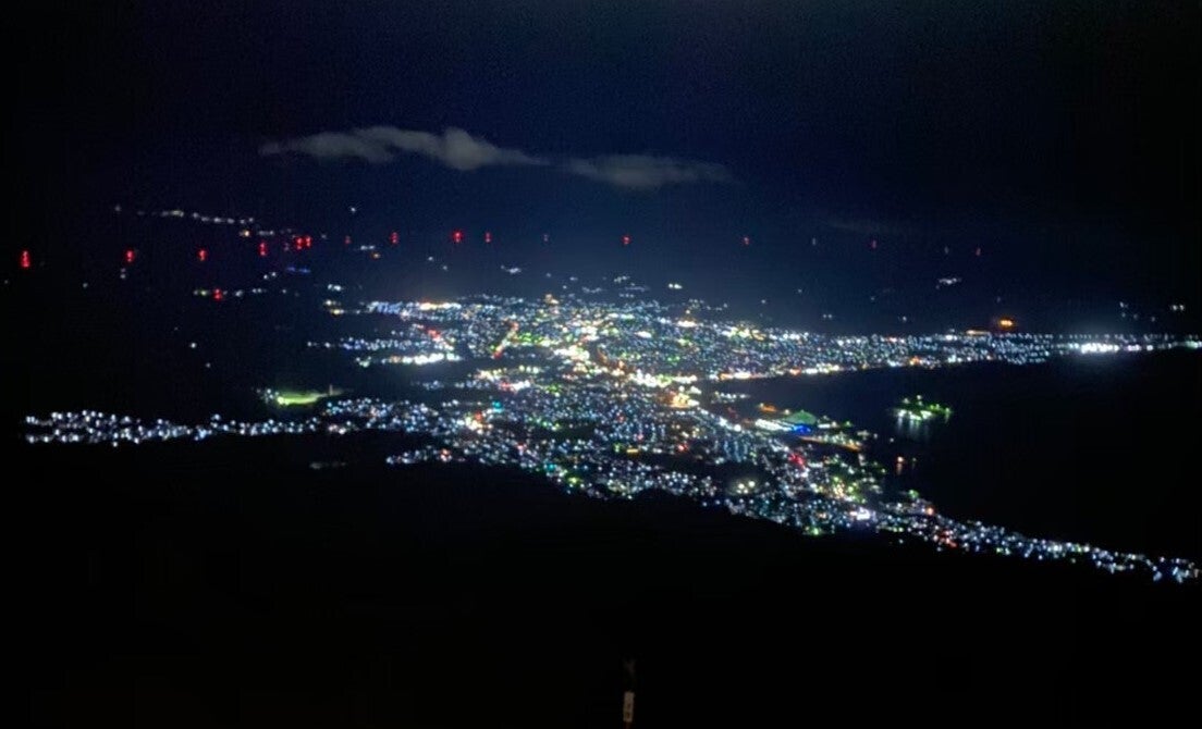 ムチュランの地元は実はむつ市ではなく、アンドロメダ銀河の美食星☆!奥さんのムチュリーとも美食星で出逢っています。とある日、夜空を散歩していたムチュリンは地球の上で舞っているキラキラと輝くアゲハチョウを目にし興味を持ちます。ムチュランが目にしたアゲハチョウ(むつ市の夜景)