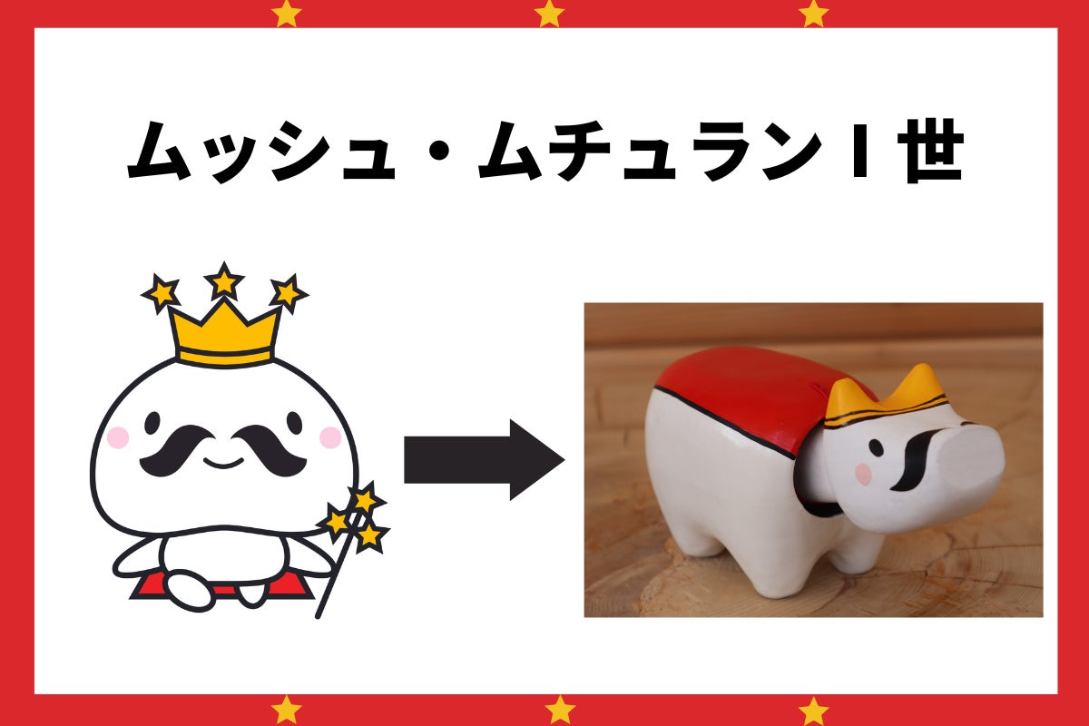 おひげが特徴的なムチュランですが、こだわりはそれだけではありません!例えば、ムチュランとニッコの頭に描かれた王冠やムチュリンのドレスのリボンなど、細かいところまで職人さんのこだわりが感じられるデザイン、ぜひお手に取って近くで見てみてください!