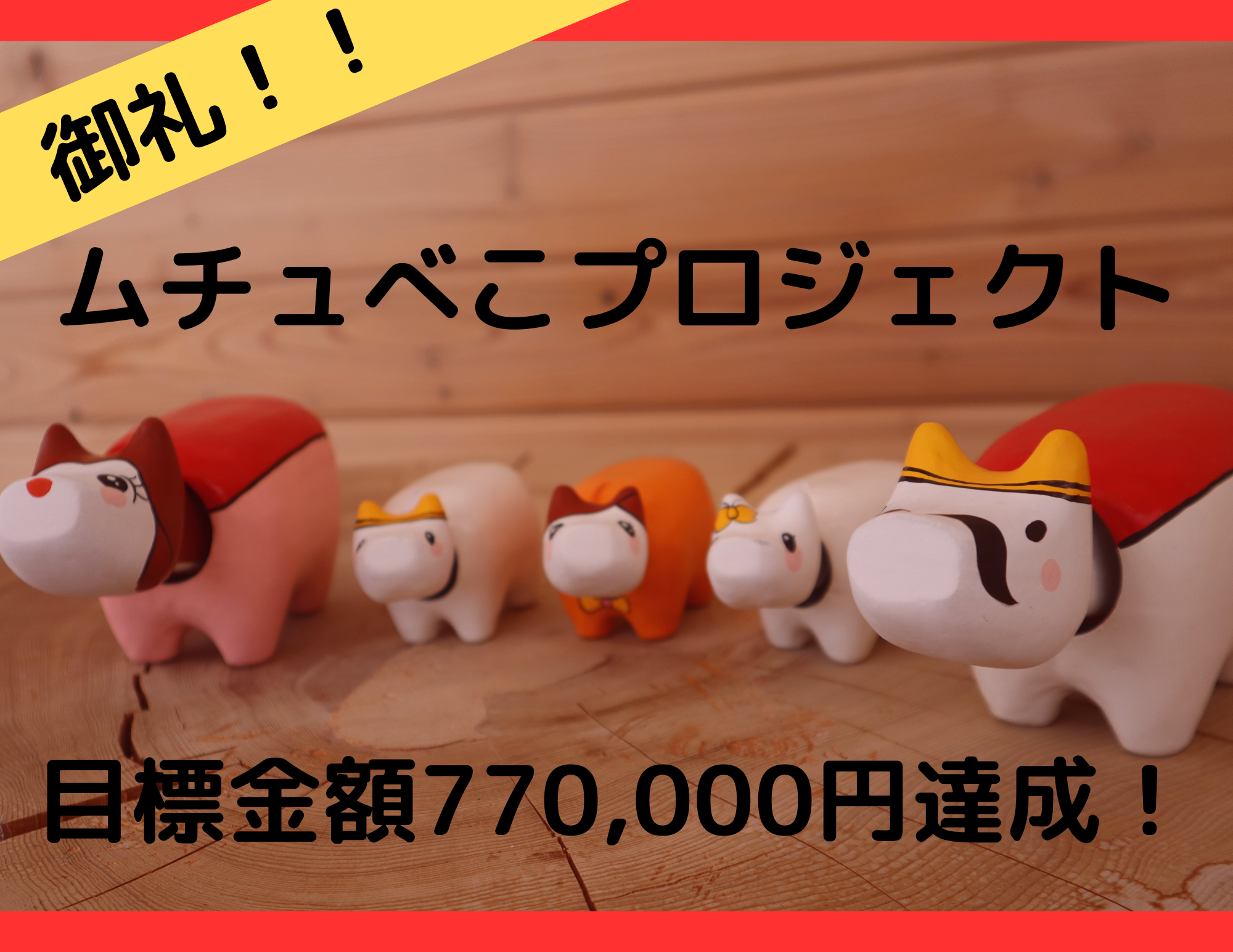 「【MUTSU×AIZU】コラボ赤べこ"ムチュべこ"を作って日本に元気を届けたい!」プロジェクトですが、本日13時2分、目標金額である770,000円を達成しました!