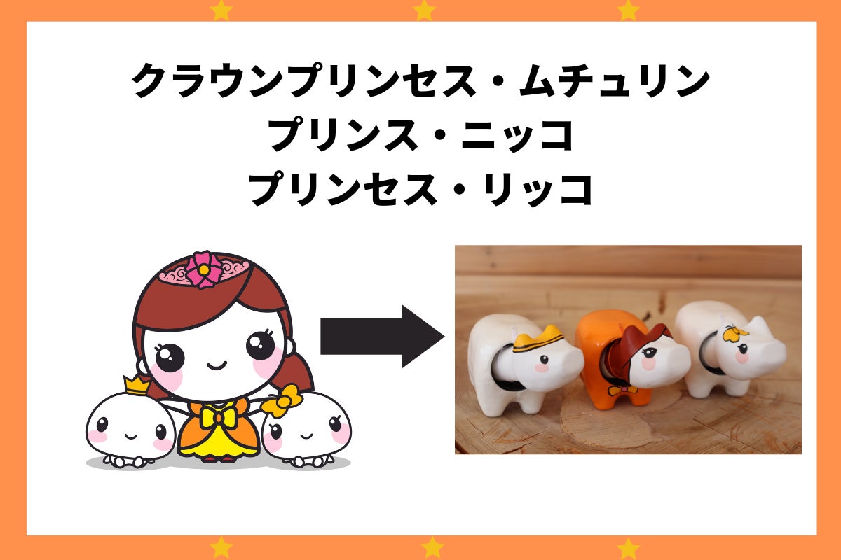 「クラウンプリンセス・ムチュリン」「プリンス・ニッコ」「プリンセス・リッコ」デザイン赤べこ)