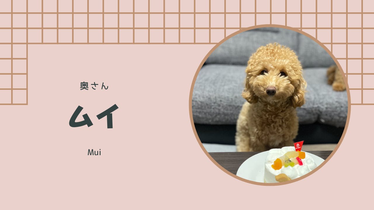 看板犬夫人。性格は考えたらキリが無いほど色んな一面を持っているムイちゃんです。