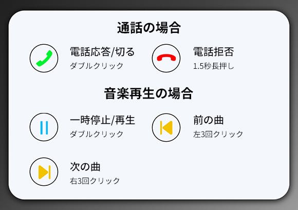 タッチコントロールで、音楽の再生・一時停止・曲の選択や電話の応答・拒否などの操作が簡単にできます。