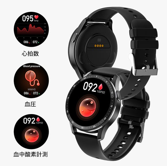 精密なチップが搭載され、高度な算術演算と高精度の検出機能で心拍数・血圧・血中酸素をリアルタイムでモニター可能です。