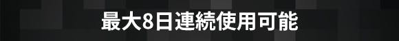 2~3時間の充電で通常使用可能時間約7~8日、連続待機時間は約8~12日です。