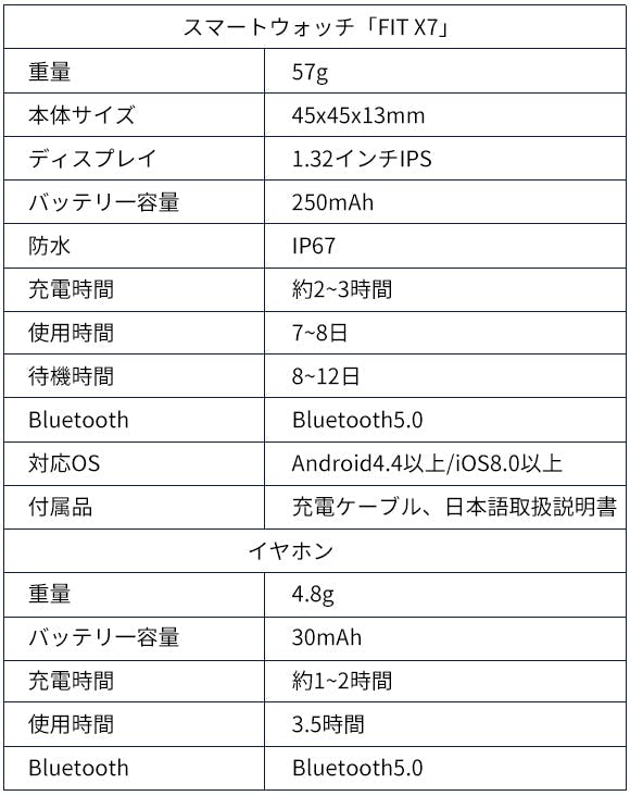 シンプルなデザイン&生活に役立つ機能満載、TWSイヤホンを内蔵したスマートウォッチ「FIT X7」。