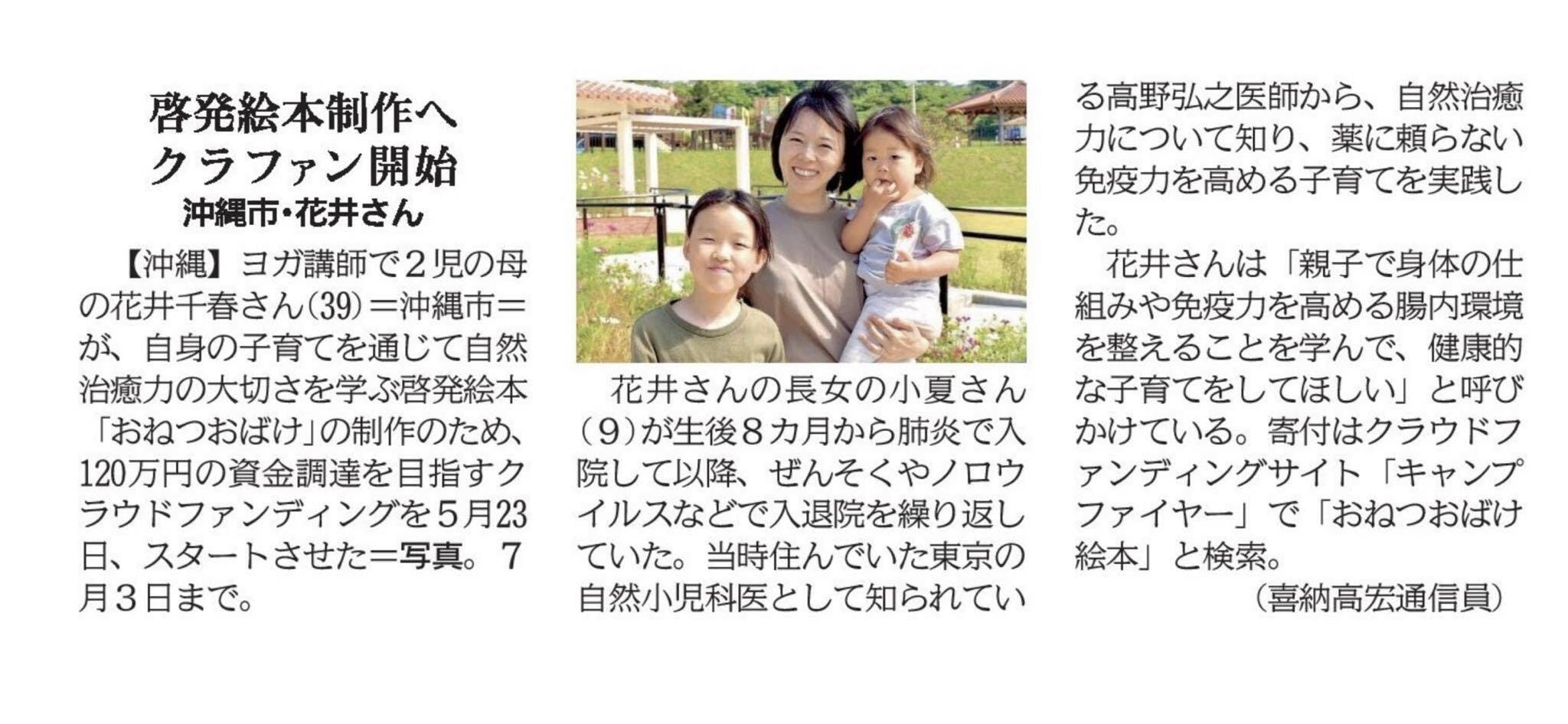 6月6日付け琉球新報さんに、このプロジェクトをご紹介いただきました。