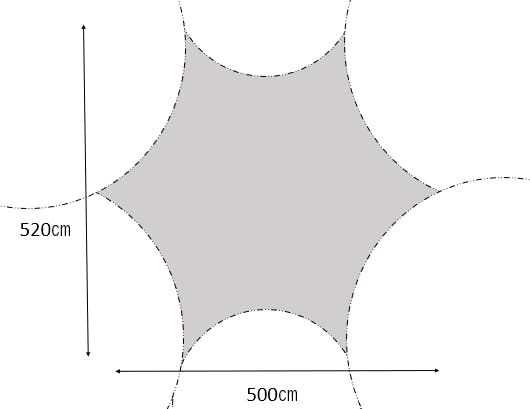 横から見るとツノのように見えることから、タープのツノと呼ばれる形状です。圧倒的なフォルムからたくさんお声掛けしていただいたスタイルです。ポールの高さより天井が80㎝ほど下がります。開放的ながらメインの影を作る部分の位置を下げることにより、太陽の位置による影の移動を最小限に抑えられます。