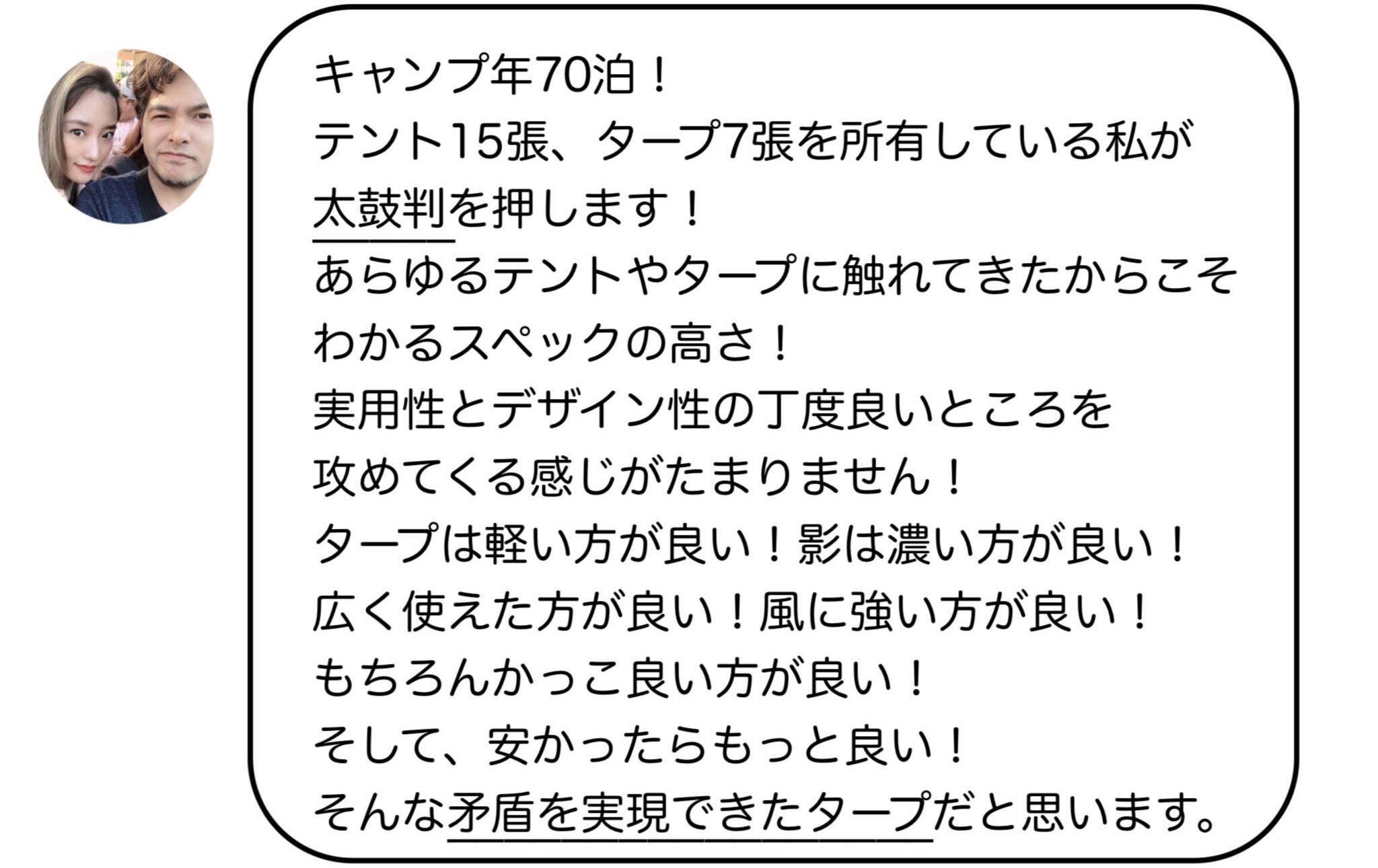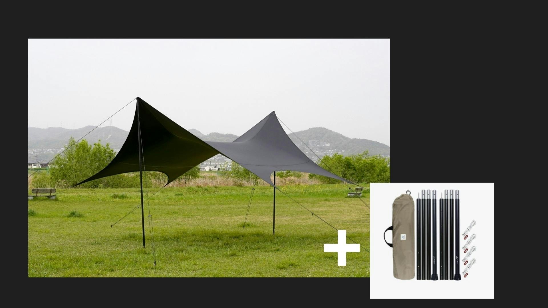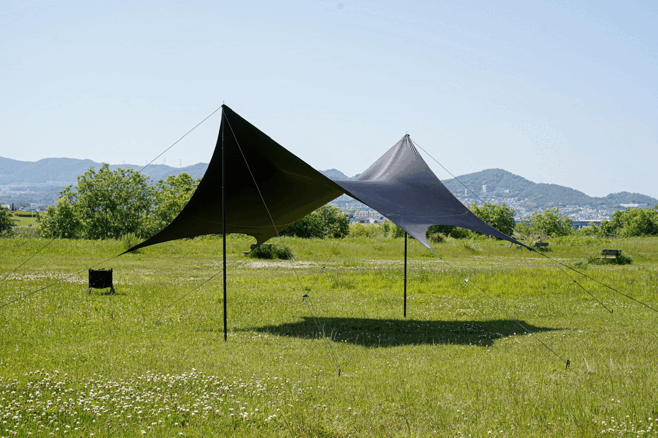 自分自身がユーザーだからこそ、ユーザーのみなさまと共感したい。見た目、機能、価格、すべてにおいて満足していただけるタープを作るために、0から作り、サンプルを何度も繰り返し、この形状と性能にたどりつきました。