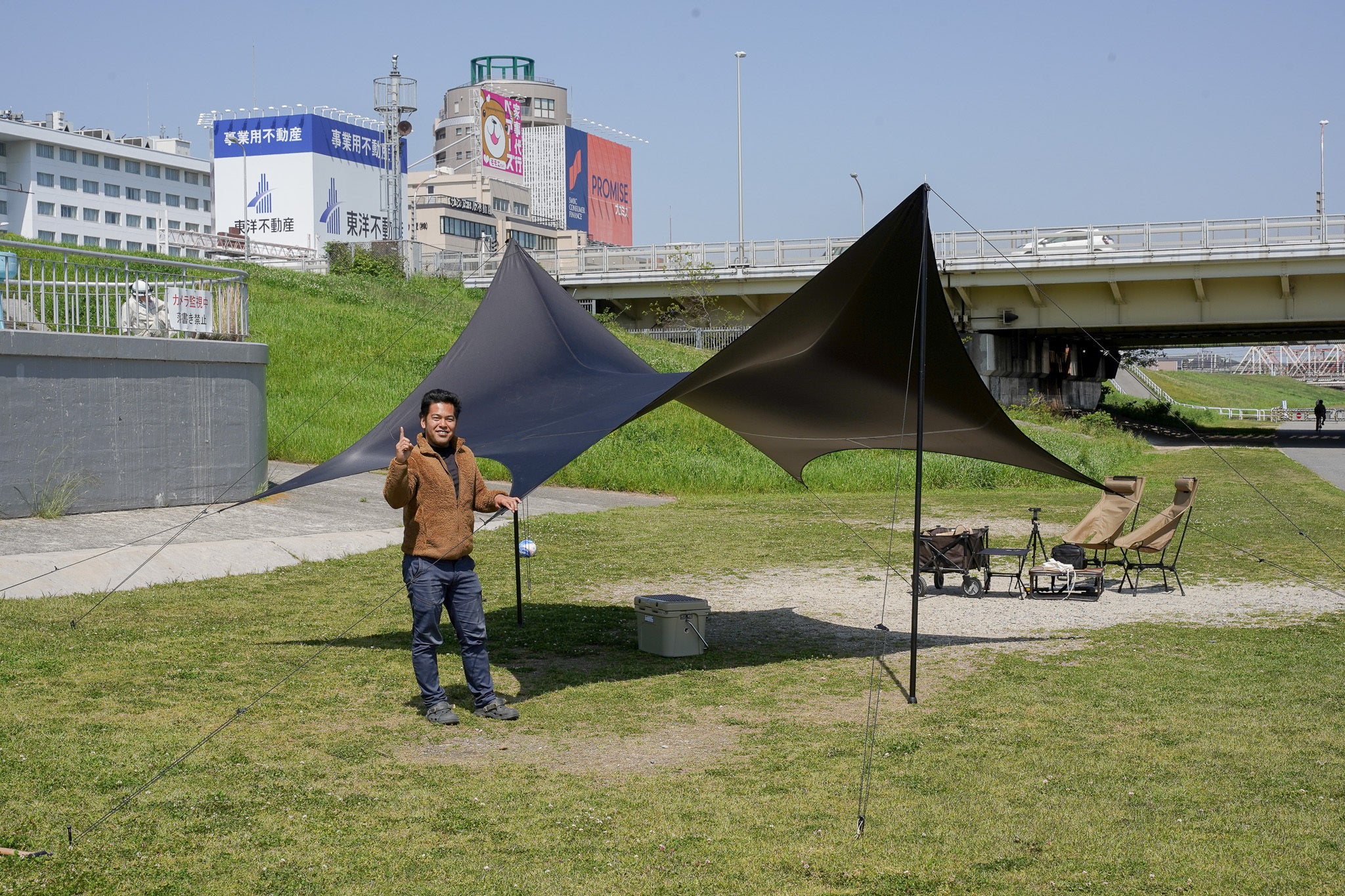 嬉しいことに、サンプルの設営で「これは、どこのタープでしょうか?」とキャンパーの皆様にたくさんお声掛けいただきました。見た目で伝わる機能性、品質、美しさ、私が常に探求しているものです。