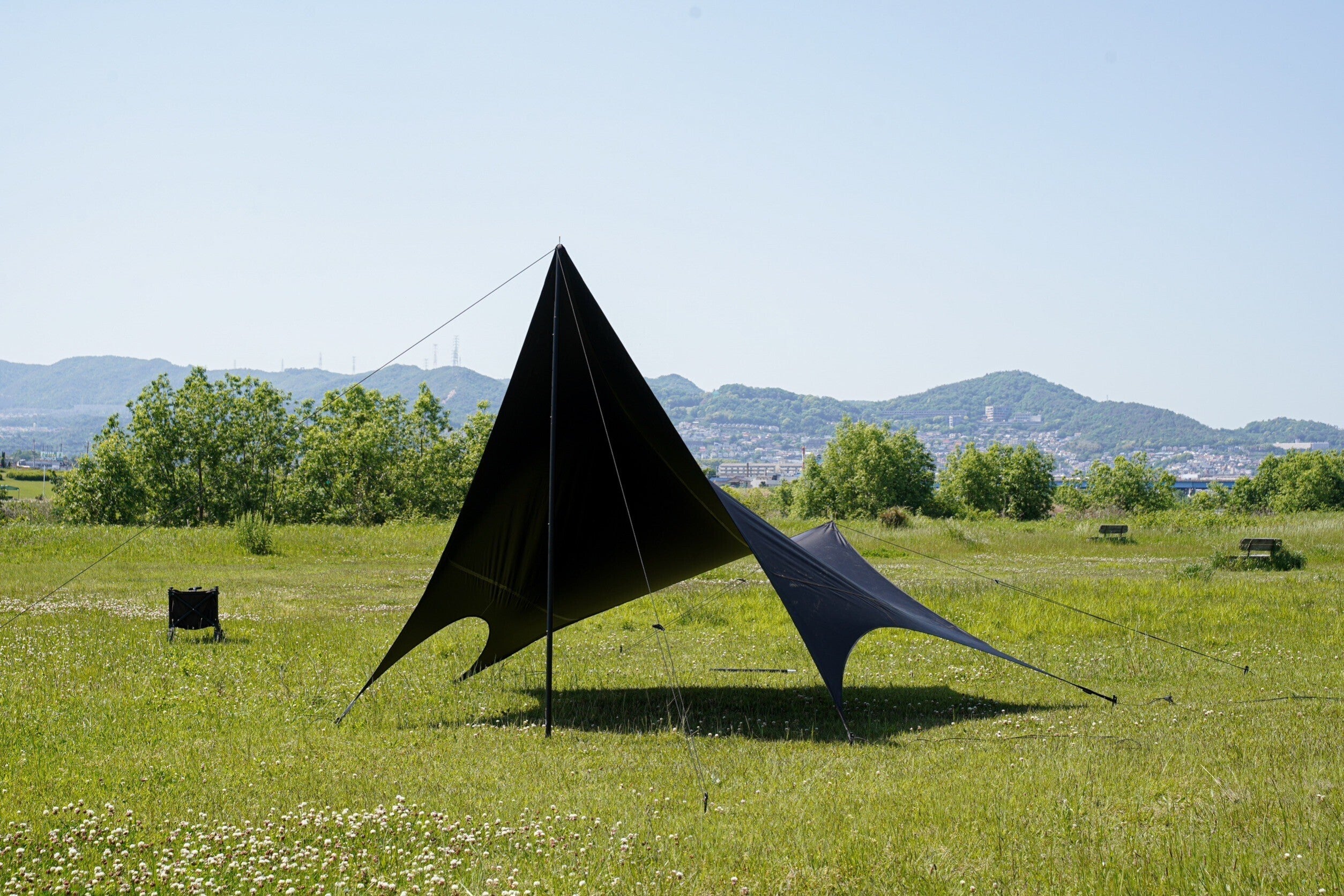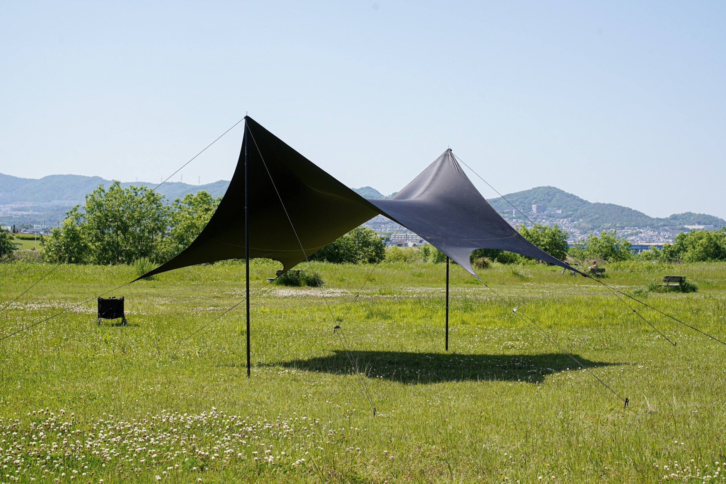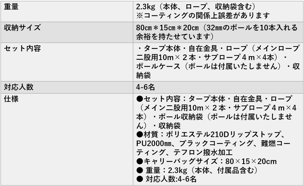 日本での設営、条件に合うのはポリエステルのタープだと思っております。