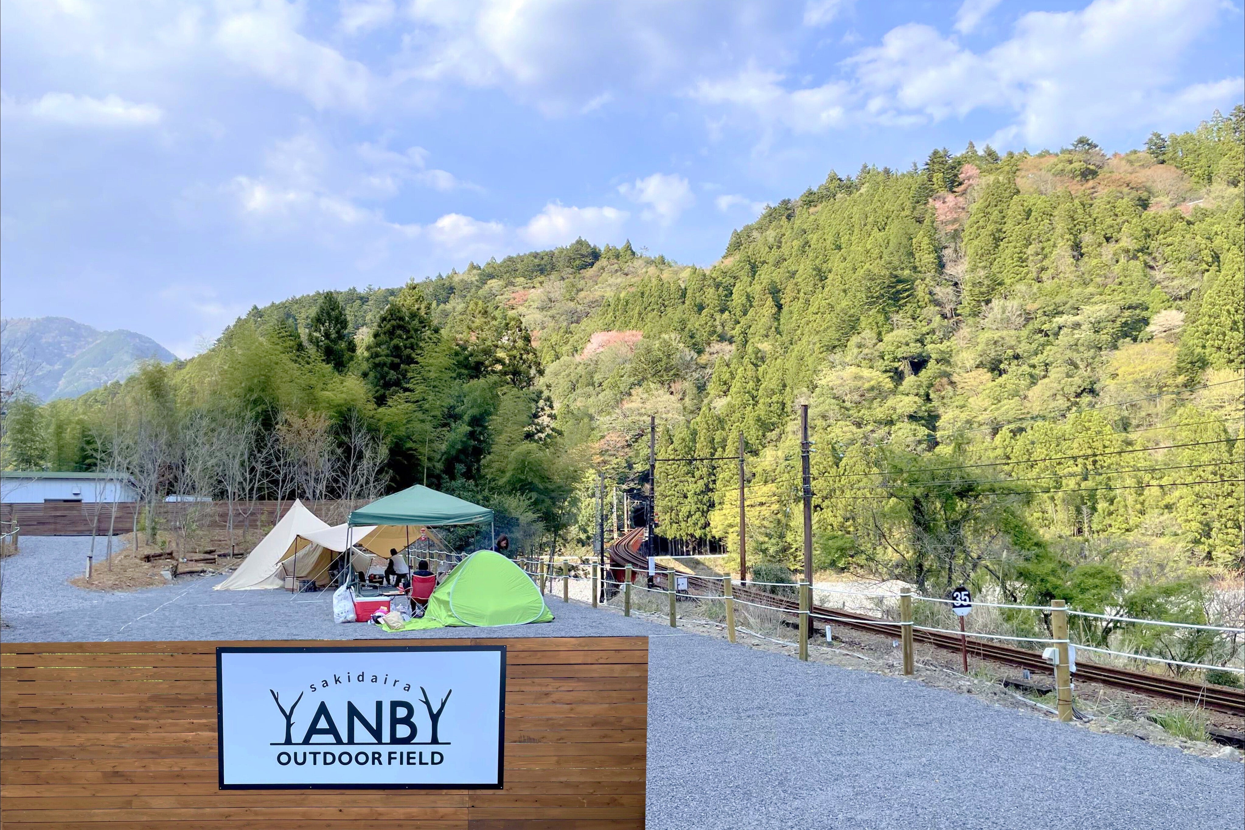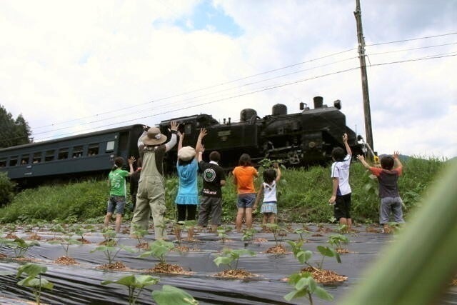 まちの若者たちが、SLが目の前を通るステキなキャンプ場を目指して作りました。