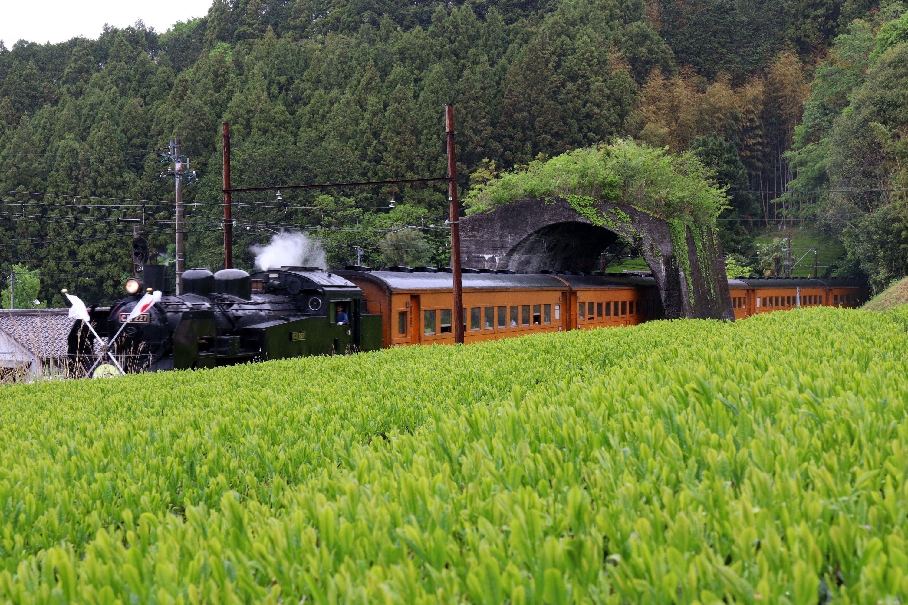 町の中心には南アルプスを源にする大井川が流れ、茶畑や山々に囲まれた大井川沿線には「SL」が走っています。近年では「機関車トーマス」を再現したSLが話題になりました。