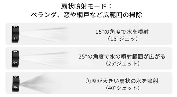 高圧直噴モード:水を一点に集中して噴射し、頑固な汚れを瞬時に除去