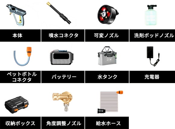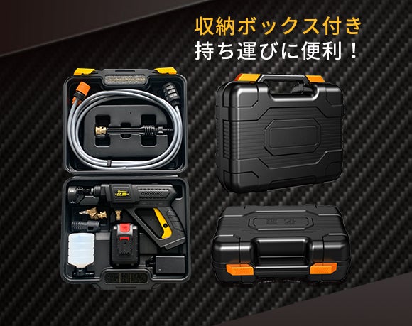 軽量設計&コンパクトサイズで持ち運びが楽々!豊富なアクセサリーを付属し、洗車から室内掃除や外壁、お庭、ベランダなどの洗浄まで、どんなシーンでも水の衝撃力でしっかりと洗い落とします。