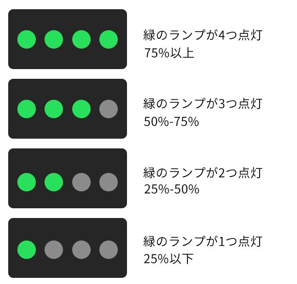 電源残量は4段階で表示されますので、バッテリー残量が一目でわかります。