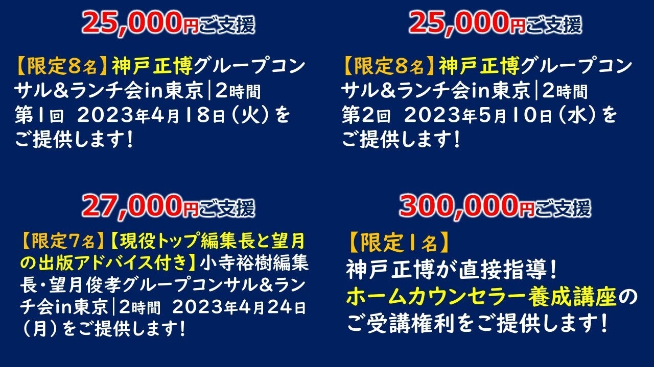 ※フル・パッケージプランのご支援者の方には、限定人数がある
