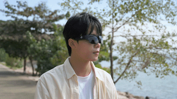 カメラがフレームの端に設置されているスマート眼鏡も多いですが、VX16はレンズをフレームの中央部分に設置しておりますので、視野とずれない見たままの光景を撮影可能です。