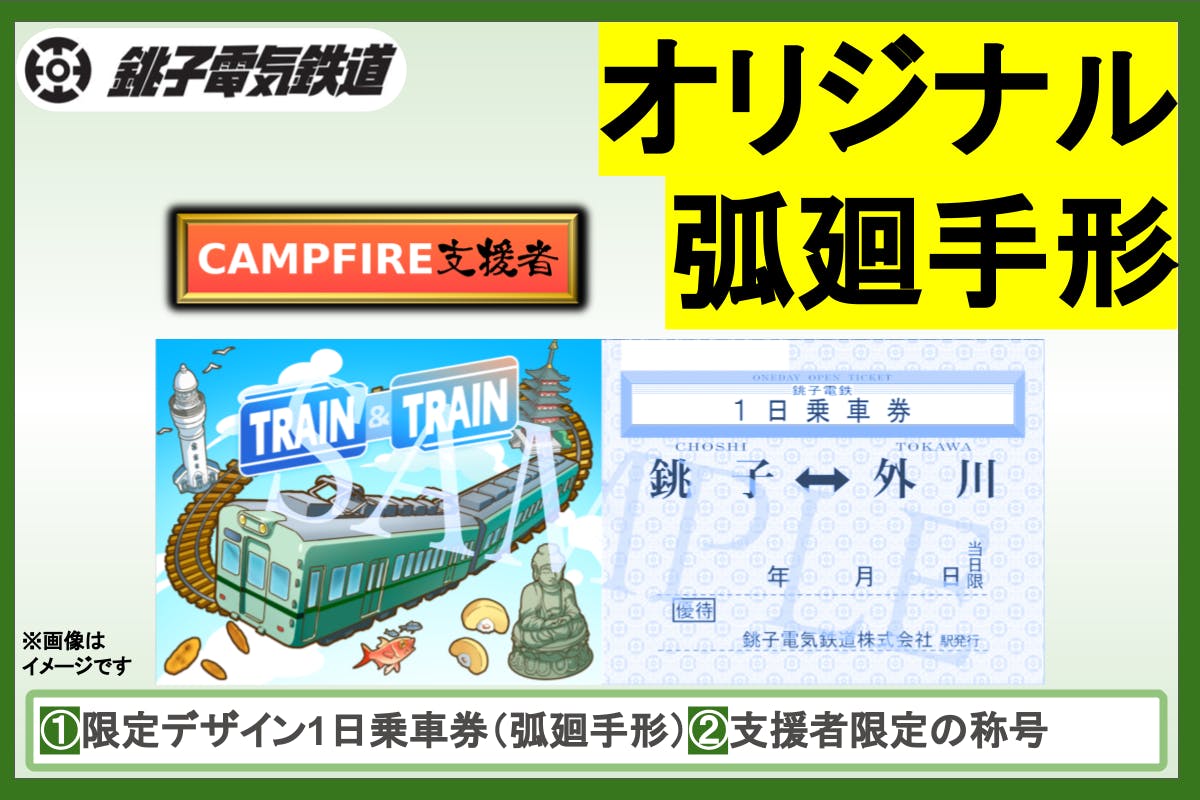 新たなリターンとして、アプリオリジナルデザインの銚子電鉄の1日乗車券(弧廻手形)を追加しました。