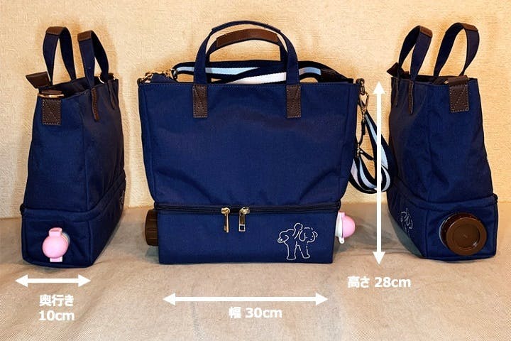 バッグのサイズは、幅30センチ、高さ28センチ、奥行き10センチ。
