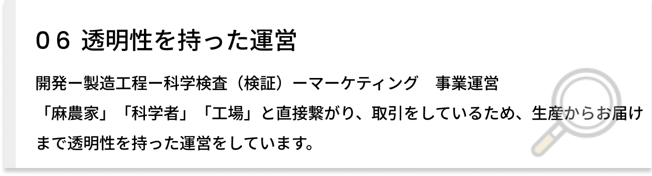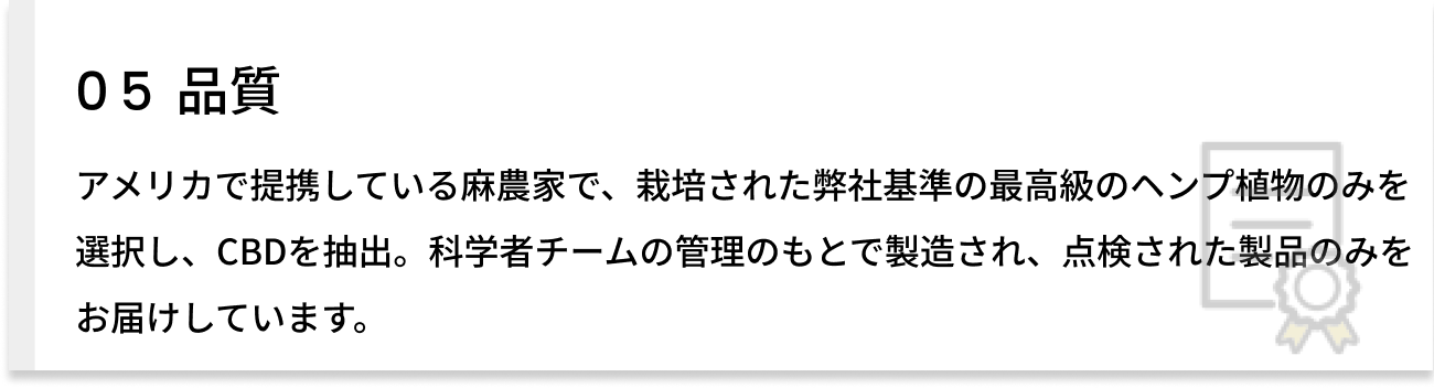 弊社が輸入するCBD水溶液はアメリカで400店舗以上広がっていることもあり、お客様からの信頼とブランドを最も大事にしています。