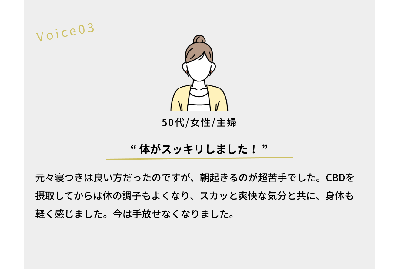 ※CBD摂取はご体調に合わせてご自身で量を決めてください。