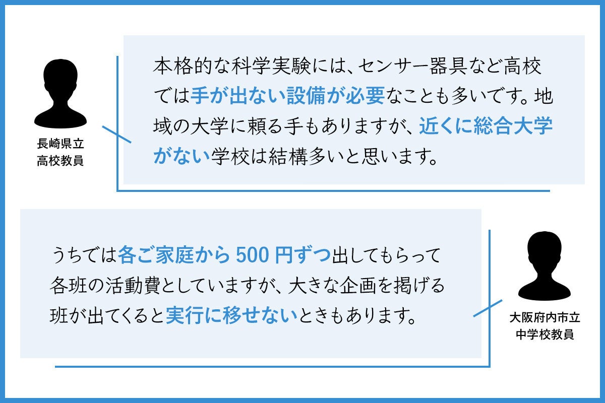 多くの学校では、探究の中で生徒の「やってみたい」を叶えるための設備が不足しています。