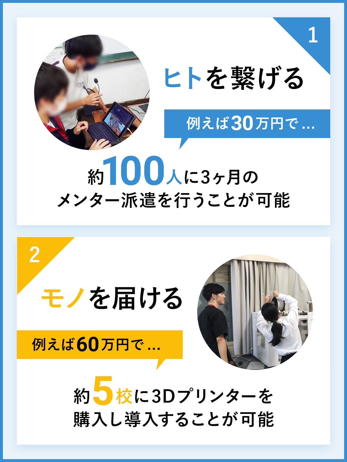 ※ご支援が目標設定金額を上回った場合は、上回った分のみ、一定割合を事業運営費(主に、探究支援を拡張するためのプラットフォームシステムの開発費)に充当する場合があります。その際は当ページに追記する形で明記します。
