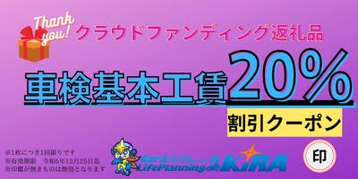 また今回リターン品としています車検基本工賃20%割引クーポン券を1枚ご準備させていただきます。