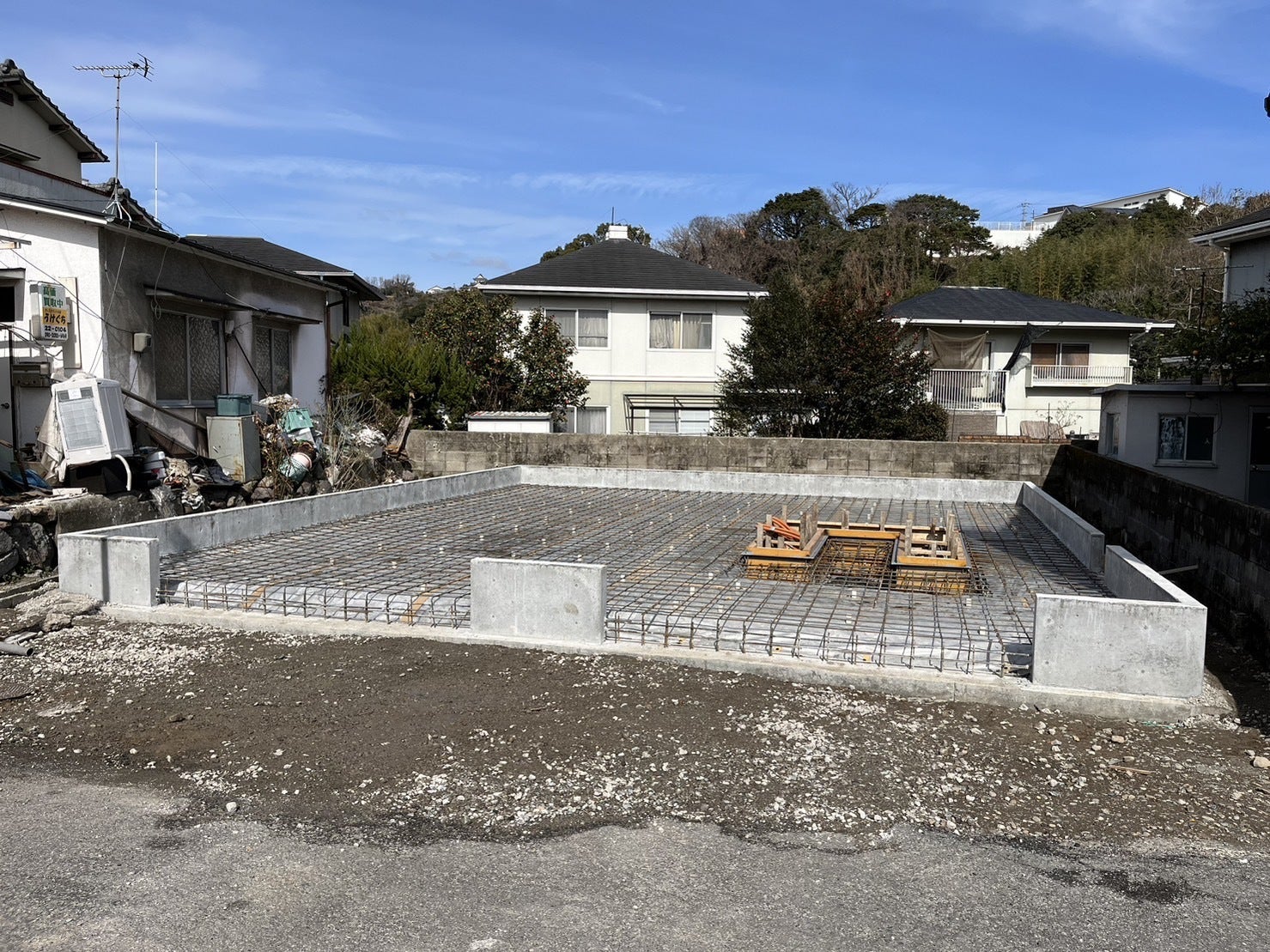 下地作りとして、土台の盛り土からコンクリの枠組みまで進んでいます。結構、コンクリの土台が厚く作られてて、びっくりします。次回もお楽しみに!
